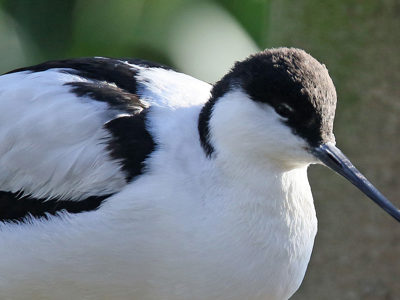 Part of the “wader” group of birds, the avocet is easily distinguished by its “pied” (black and white) colouration. Adults are white, with black caps and black patches on the wings and back.