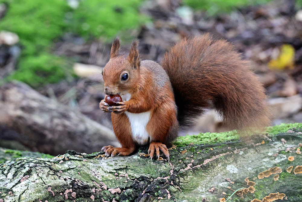Red squirrels help spread seeds and fungi, in particular in our coniferous forests. As they have specialised in feeding on cone seeds, these are spread in a natural way through the red squirrel’s eating habits. They also help spread fungi spores which are important for the survival of the trees that squirrels live in. Finally the red squirrel plays its part in the food chain as prey.